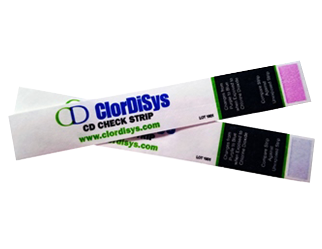 CD Checkstrips are designed to provide a visual confirmation that chlorine dioxide gas was present in the area in which the test strip was placed. The check marks on the paper strips will change color from purple to pink when contacted by chlorine dioxide gas, but this does not necessarily indicate sterilization level contact. For sterilization cycle verification and validation, please visit our Biological Indicator Product Page.