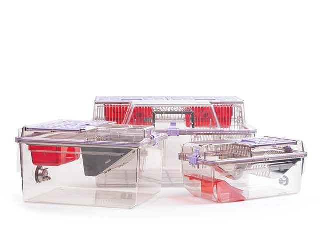 Manufactured in sturdy polycarbonate, Allentown offers the Mouse Mezzanine and the Safe Harbor Mouse Retreat. Both fit nicely into the cage without restricting access to water or food supplies while providing space, activity area and shelter. These devices work in a variety of Allentown and non-Allentown cage systems.