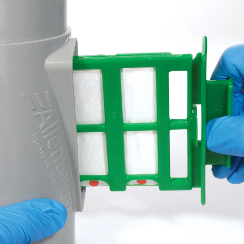 Because this system permits access to the collection media from the front of the racks, without having to move them, ergonomics and operational performance are improved. In addition, accessing the collection media without having to open the plenum decreases the risk of cross contamination. Also, the Sentinel2 provides two collection media instead of one, providing the option to send one for testing while keeping the other in the IVC, or removed and separate as a control.