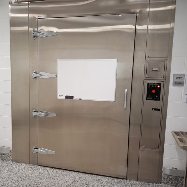 Depending on site conditions, valuable floor space may be saved with the construction of a building decontamination room as compared to a fabricated decontamination chamber.