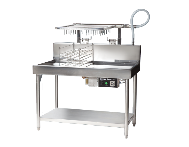 The BetterBuilt DD Series Downdraft Necropsy Table provides an adjustable yet uniform downward airflow, for full protection from strong fumes and odours. All stainless steel construction, lift out hand sink, perforated work surface, and removable air baffles combined with cold water wash down capabilities ensure this workstation is easy to clean.